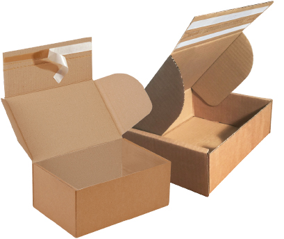 Scatole fustellate con chiusure adesive ed apertura facilitata. Particolarmente adatte per gli e-commerce e quelle attività che prevedono spedizioni e resi della merce, sono facili da montare e rapide da chiudere grazie alla chiusura ad incastro e vengono consegnate stese.